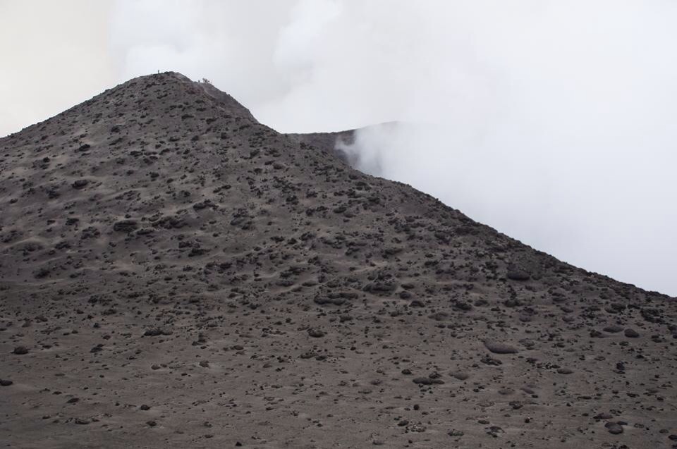 We stopped at the bottom of the mountain and I collected a rock of lava for Seth and we took some photos of the gas and smoke pouring from the top of the volcano and where we would soon be standing. It was eerily quiet except for the distant ‘boom’ of the eruptions going on deep inside…