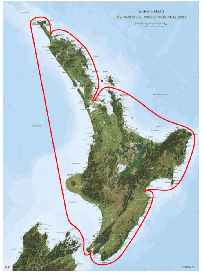 The race comprises 4 legs and circles the North Island in an anticlockwise direction, a distance of approximately 1244 nautical miles in total.